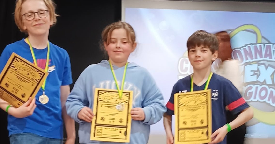 Après plusieurs manches, les quatre petits champions de l’école Saint Goustan ont su se démarquer ! Thuriau (CM1) a fini 4ème dans la catégorie champion individuel et Maëly (CM1), Antoine (CM2) et Noa (CM1) ont terminé 2èmes dans la catégorie champions en équipe et se qualifient donc pour la grande finale nationale à Paris ! Un grand bravo à eux et à tous les participants qui ont vu leurs nerfs mis à rude épreuve durant tout ce championnat qui leur tenait bien à coeur.
